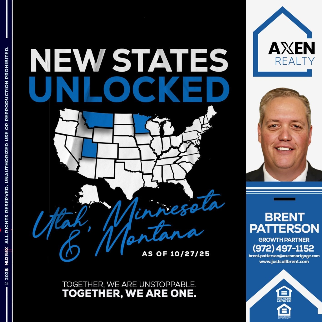 Hi, my name is Brent Patterson. I’m a Loan Officer with AXEN Mortgage LLC., offering personalized mortgage solutions, fast customized quotes, great rates and service with integrity.