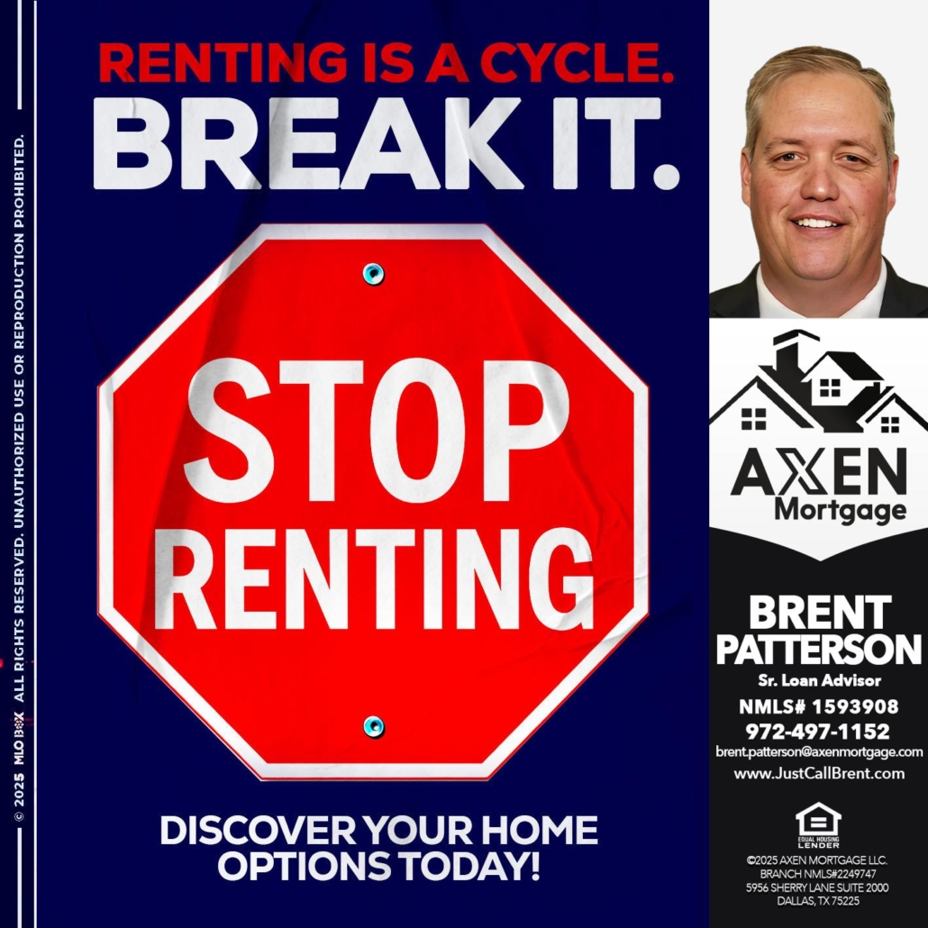 Hi, my name is Brent Patterson. I’m a Loan Officer with AXEN Mortgage LLC., offering personalized mortgage solutions, fast customized quotes, great rates and service with integrity.