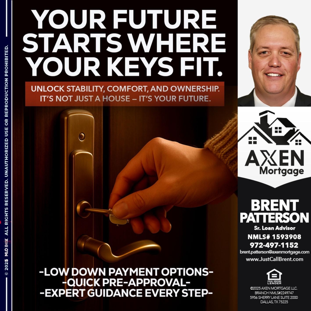 Hi, my name is Brent Patterson. I’m a Loan Officer with AXEN Mortgage LLC., offering personalized mortgage solutions, fast customized quotes, great rates and service with integrity.
